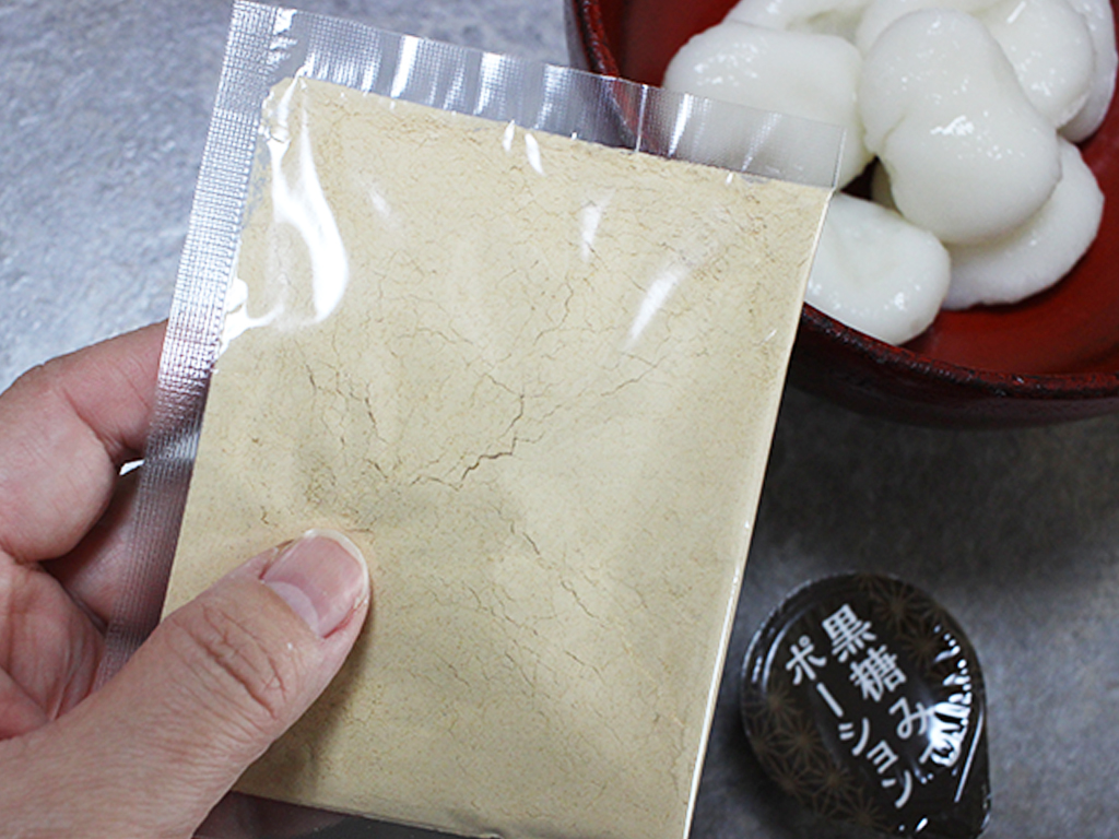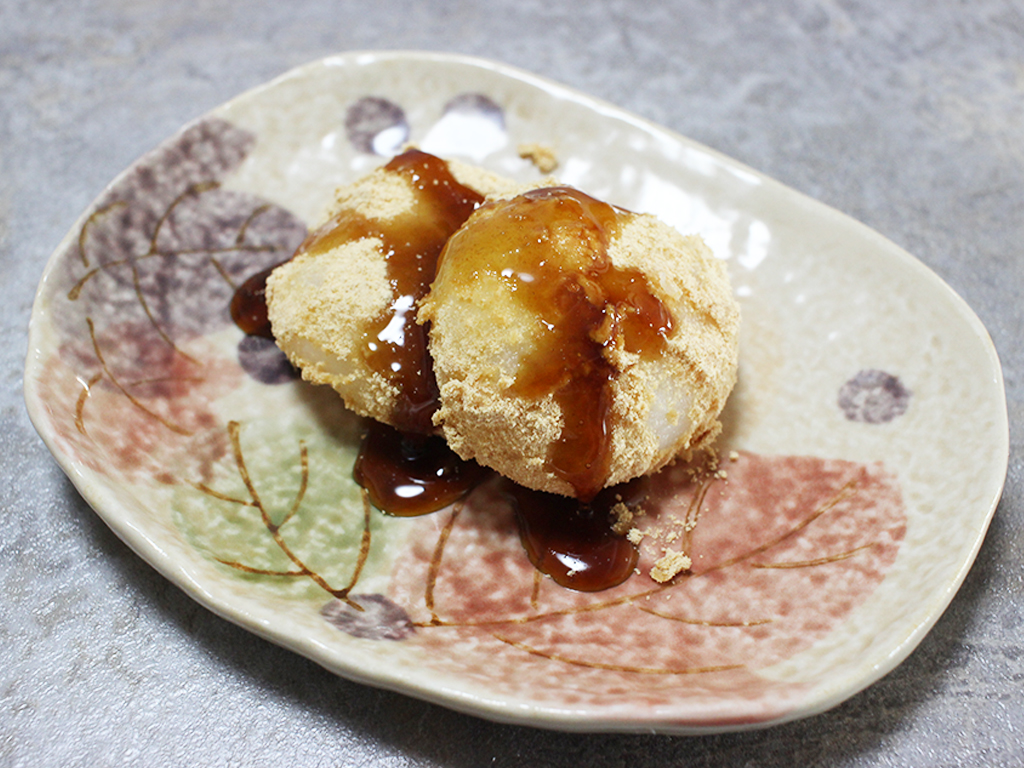あっという間に出来上がり、あとはきなこと黒蜜をかけて完成です。