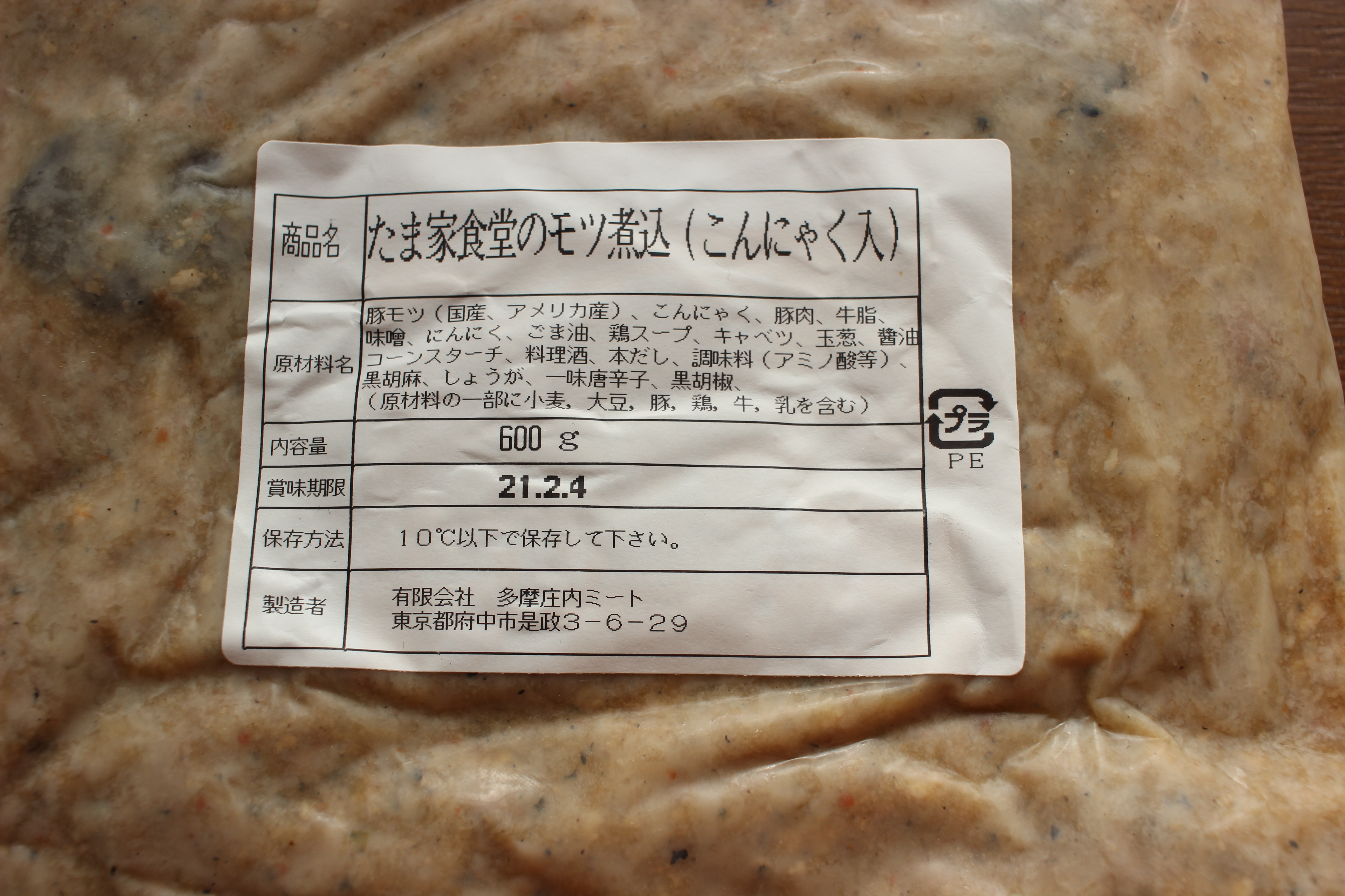 おみやげもつ煮600g(650円税込)未開封だと冷蔵庫で日持ちもします。