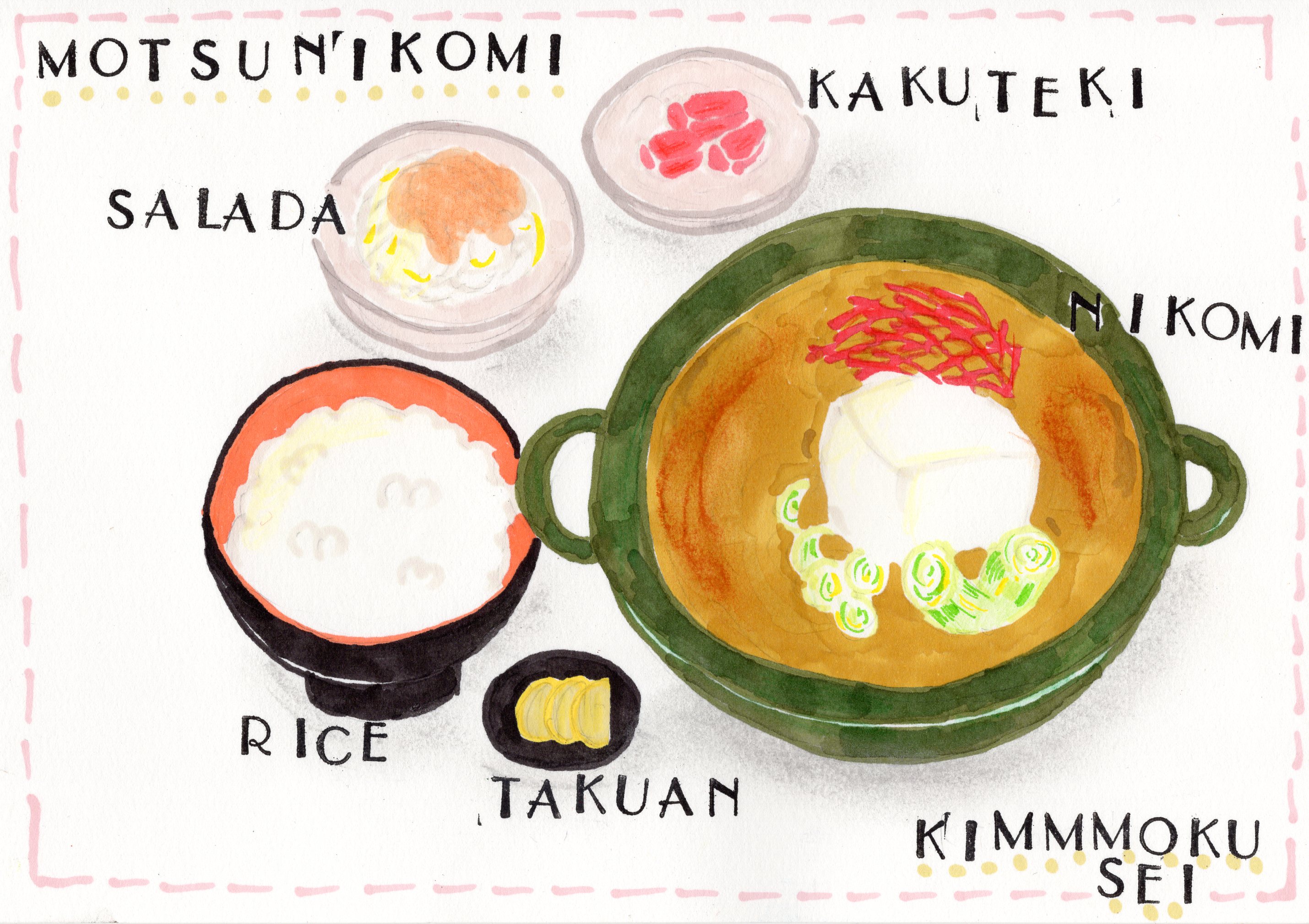 さあもつ煮定食を作ってみましょう。イメージ図も描いてみました。