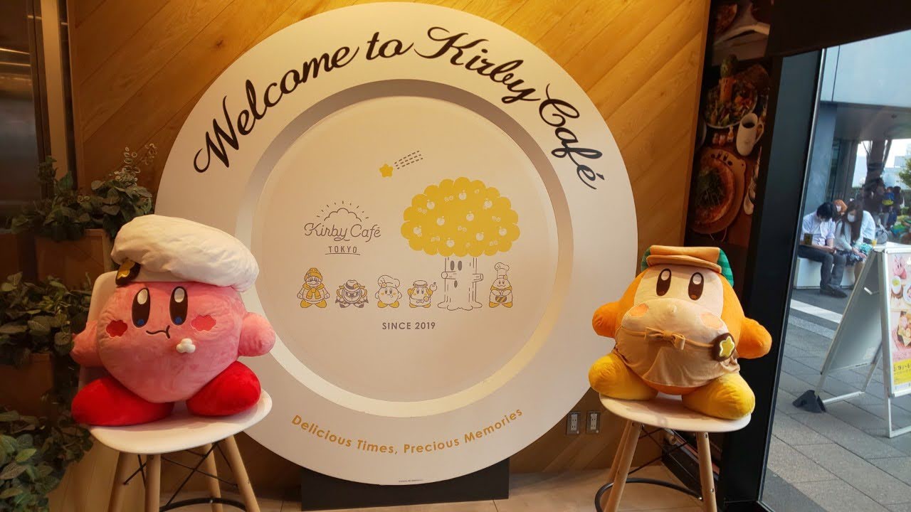 いよいよカービィーカフェへ、まずは入り口で記念写真!