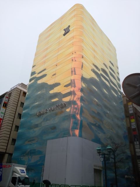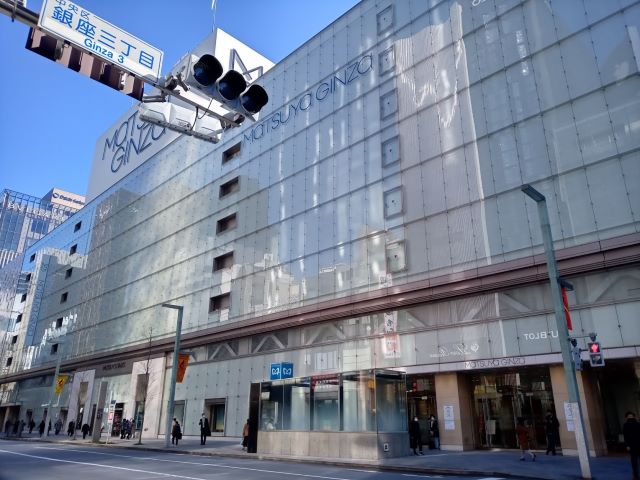 松屋銀座も壁面に街並みが映されていて街に溶け込んでいます。シルバーを基調とした建物は銀座をイメージしているのでしょうか。この辺りを歩く方たちは仕立ての良いお召し物を着ています。