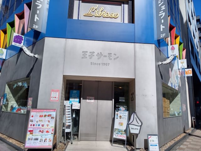少しほっこり王子サーモンのロゴが見えてきました。わたしにも用事がありそう商品がいっぱいです。相変わらず街に溶け込むシルバーの壁。
