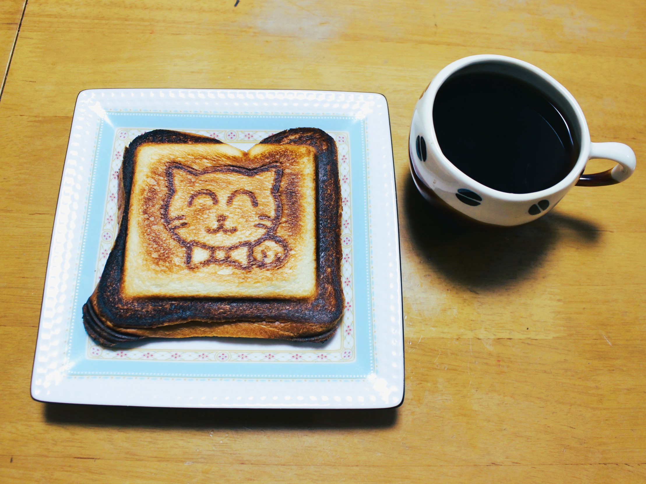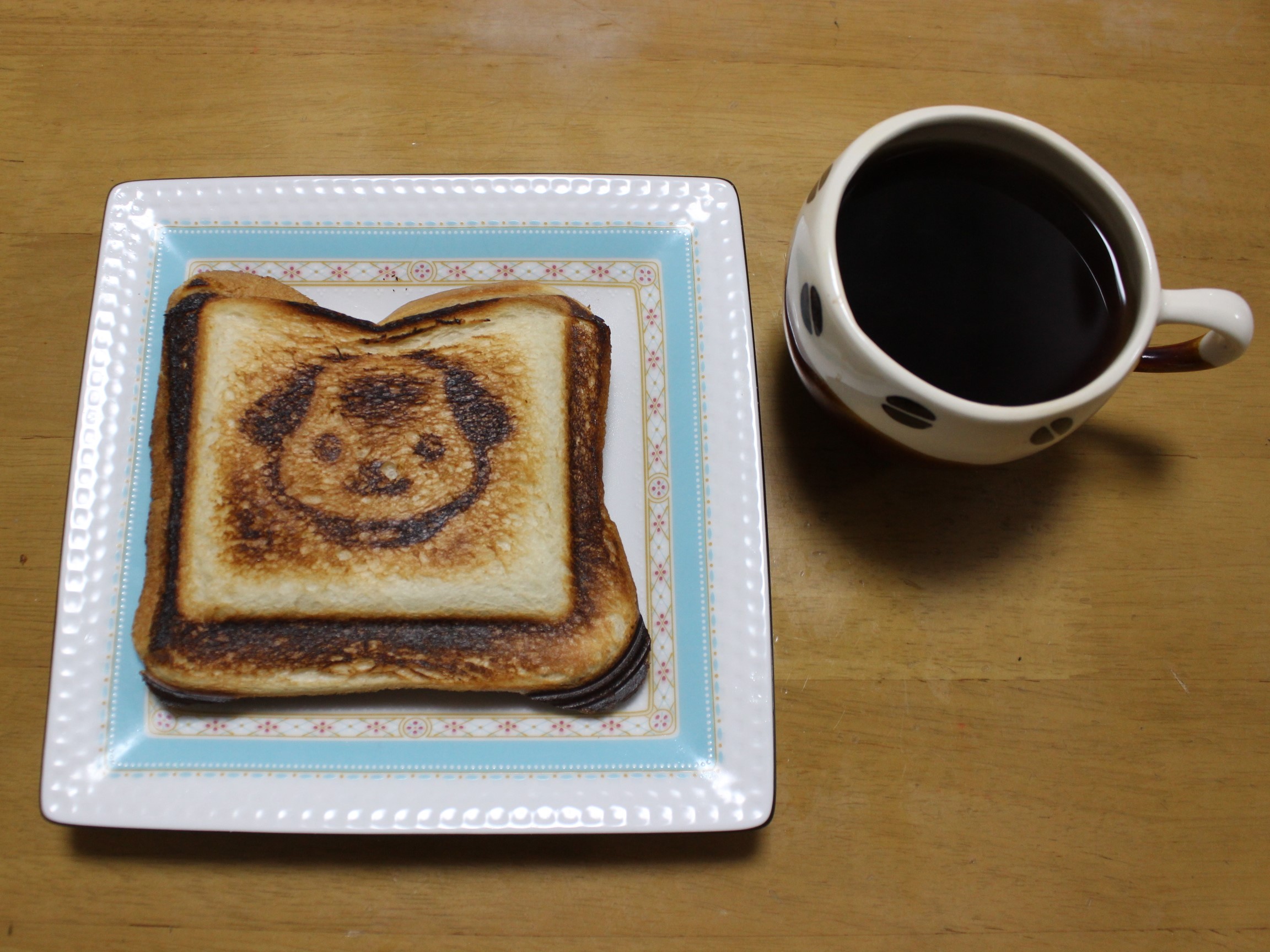 なので少しの休憩、朝はホットサンドメーカーでチョコチップバナナサンドと珈琲です。
