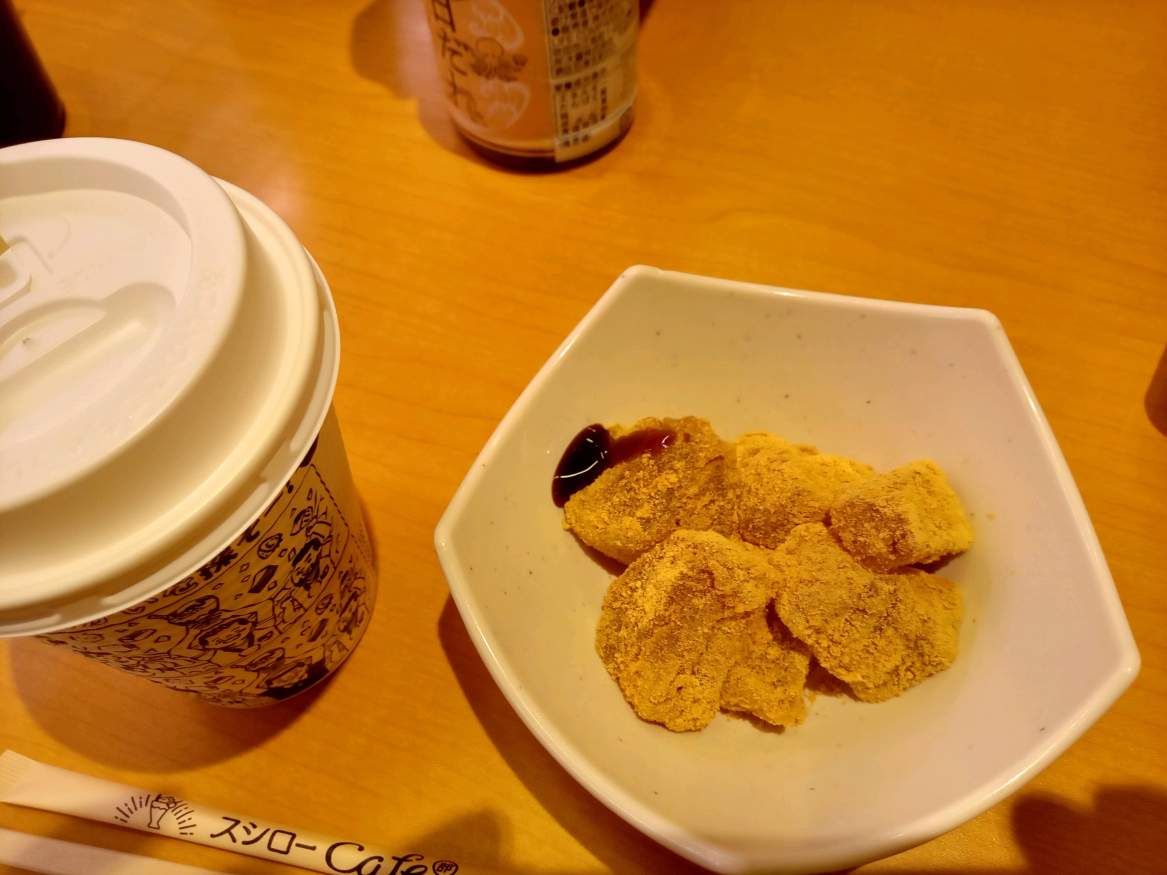 390円で美味しいホットカフェラテとわらび餅が楽しめるのだから。