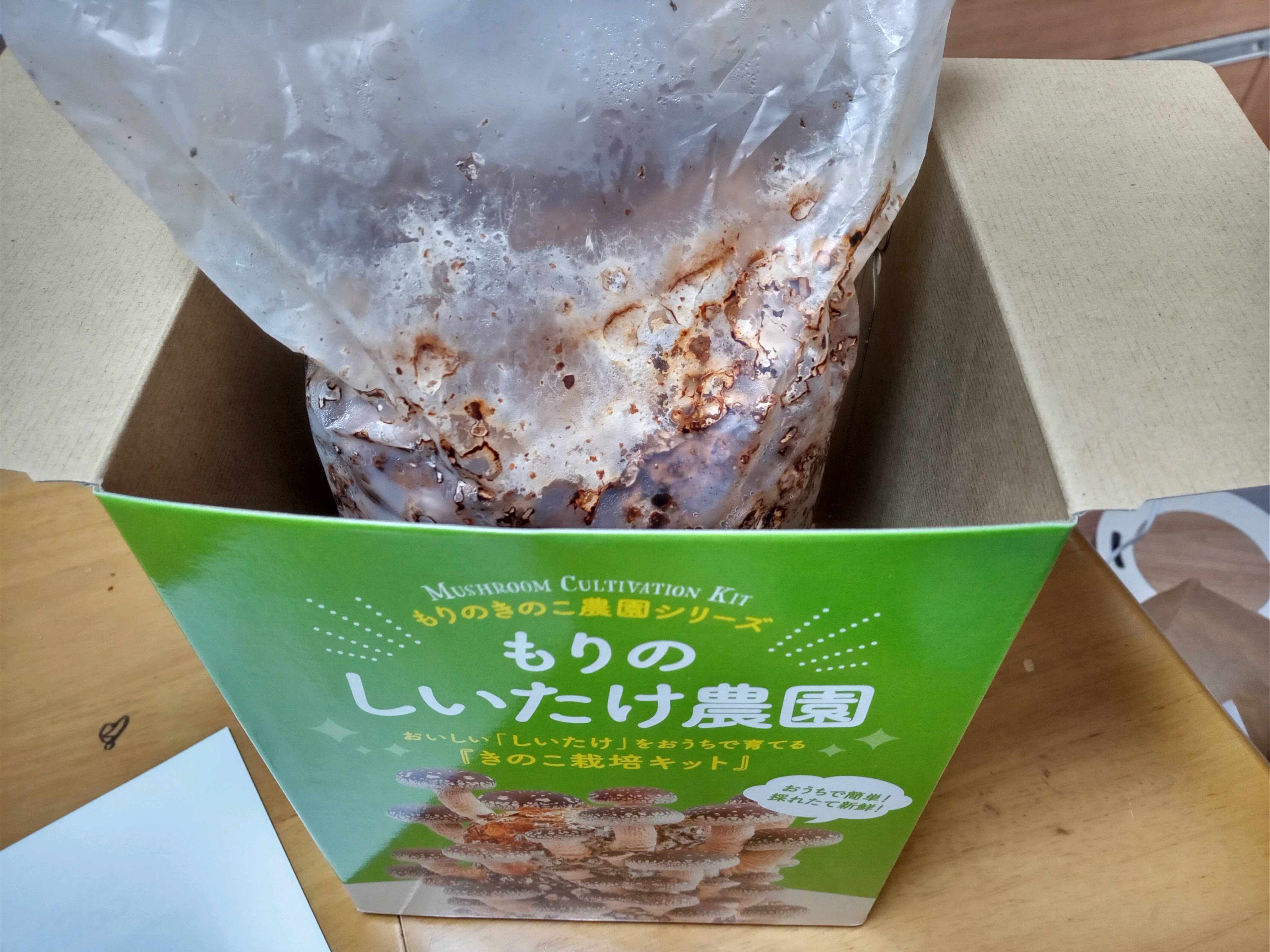 そうです昨日Amazonで自分がポチっとした『しいたけ栽培キット』でした~。