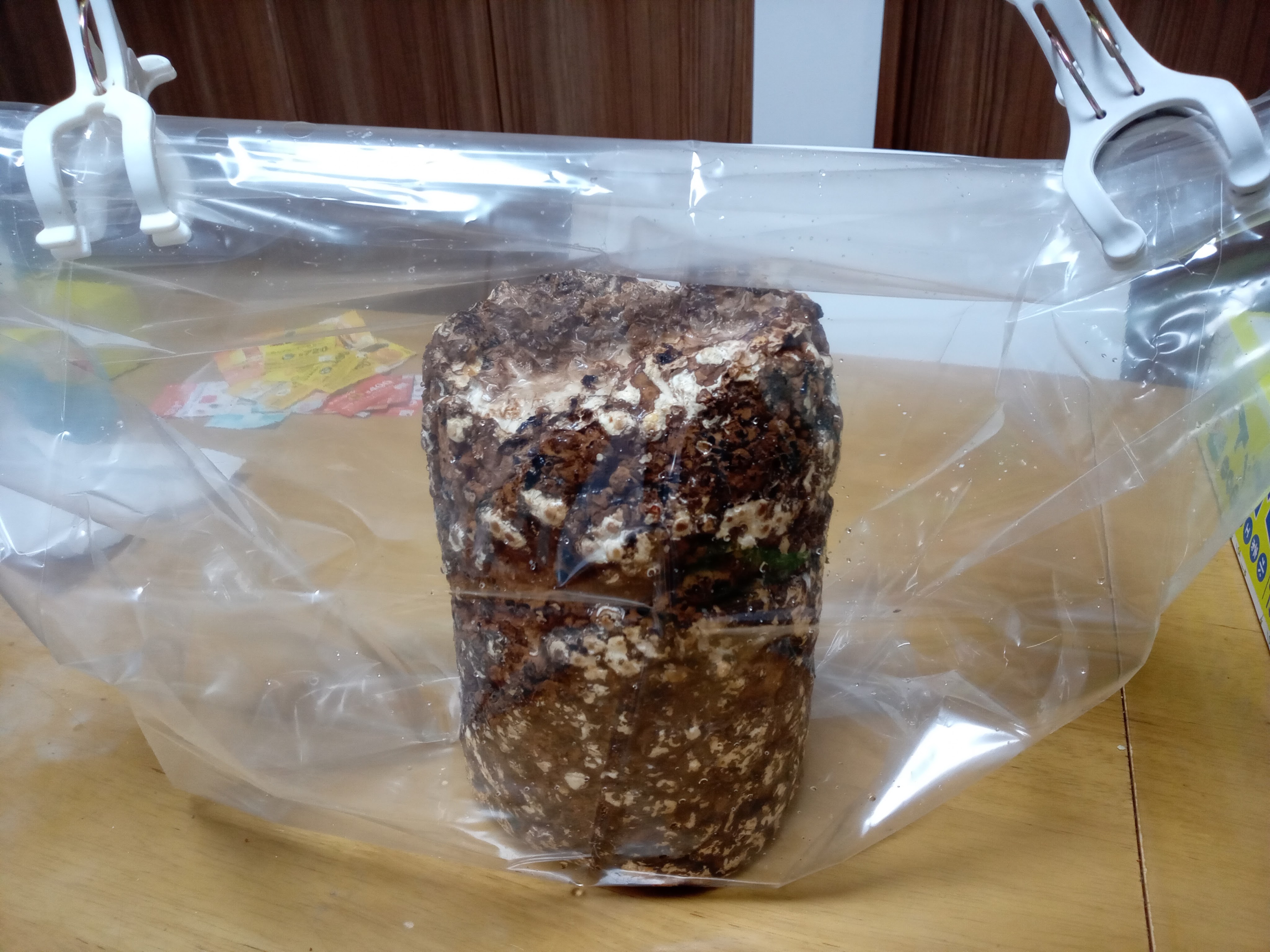 中には木のような栽培ブロック(菌床)が袋に密閉されて入っていました。