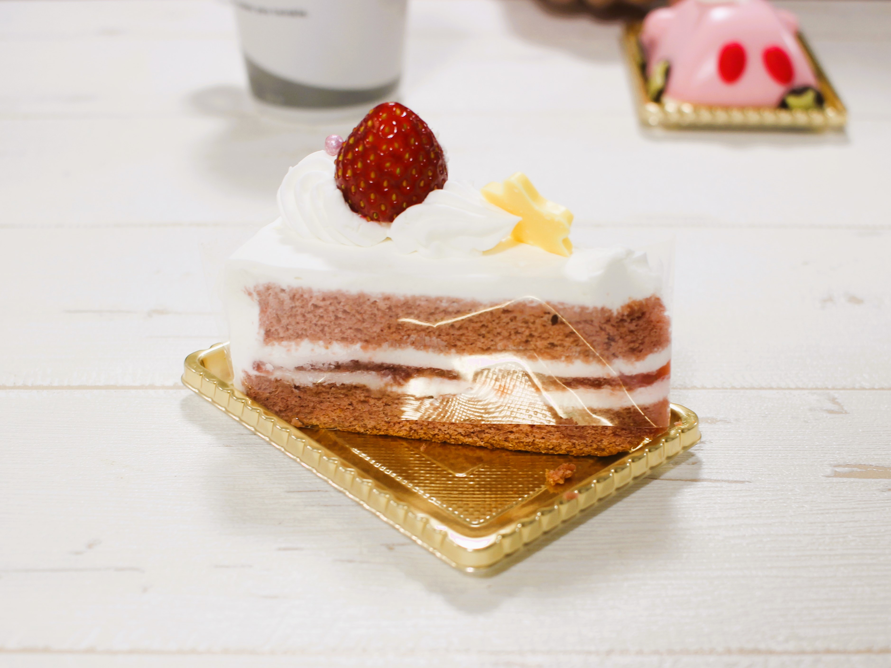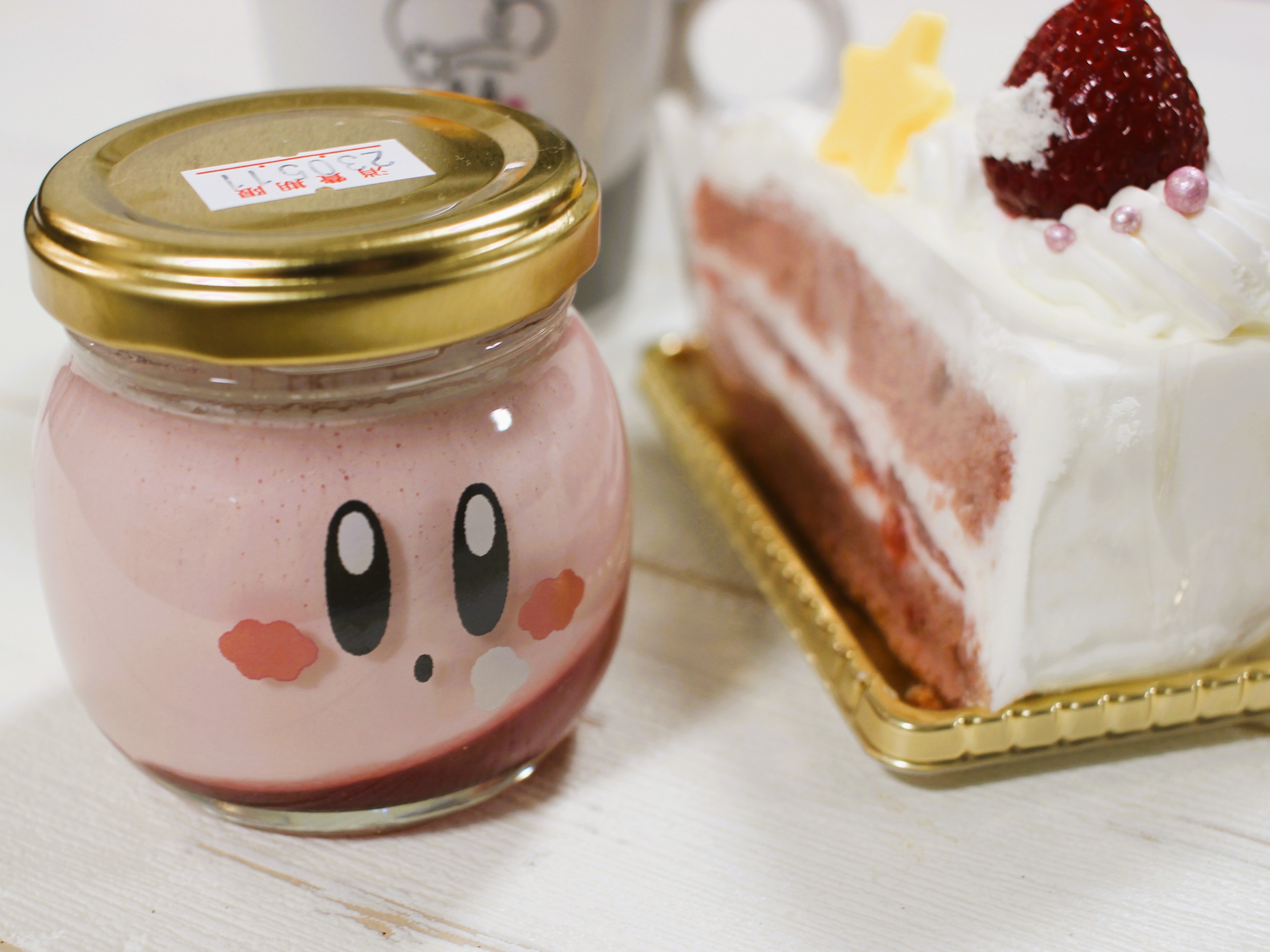 お店の前にたどり着きショーケースにはカービィのケーキが並んでいてテンションアップです!