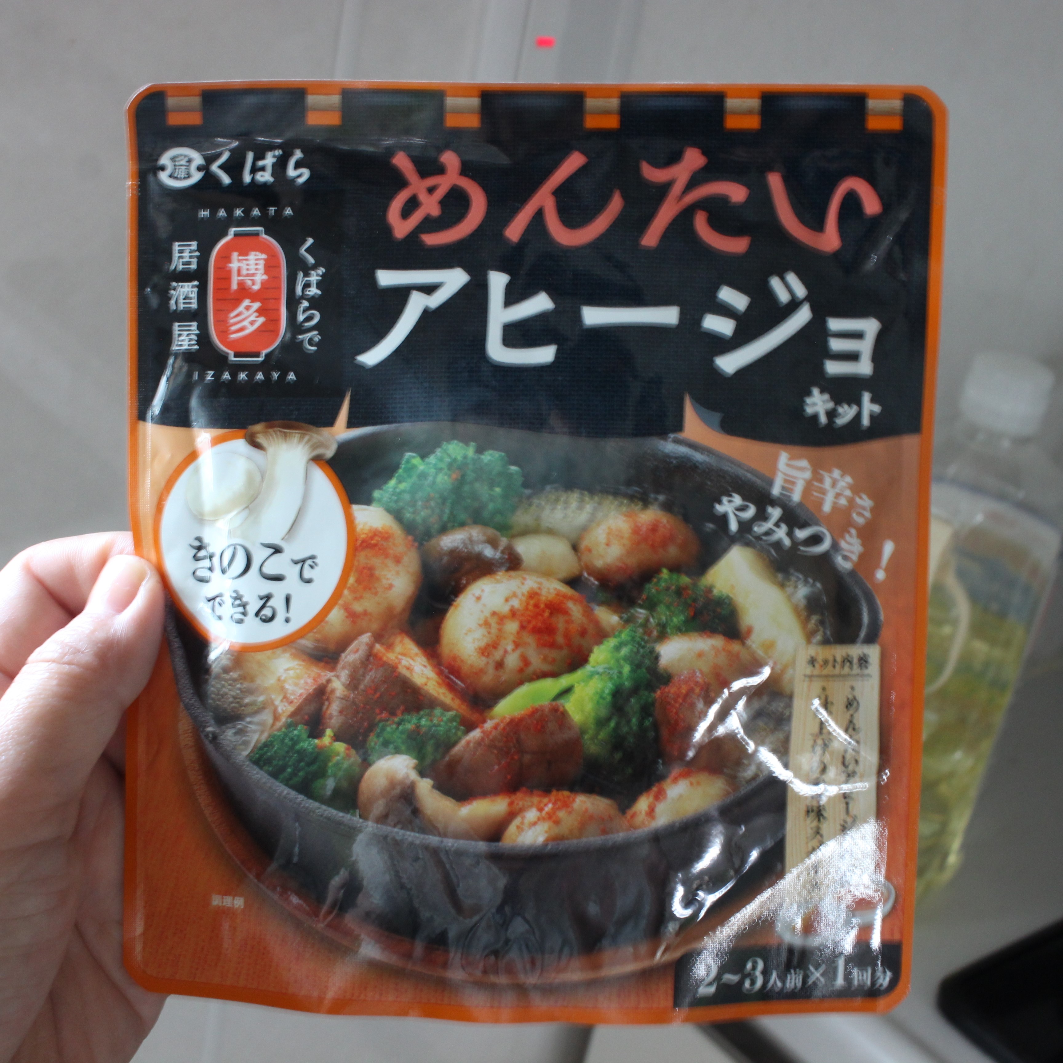 さてキッチンにあってずっと気になっていた『めんたいアヒージョキット』久原本家グループで製造されているようです。全国のスーパーで販売されているのだとか。216円(税込み)でした。