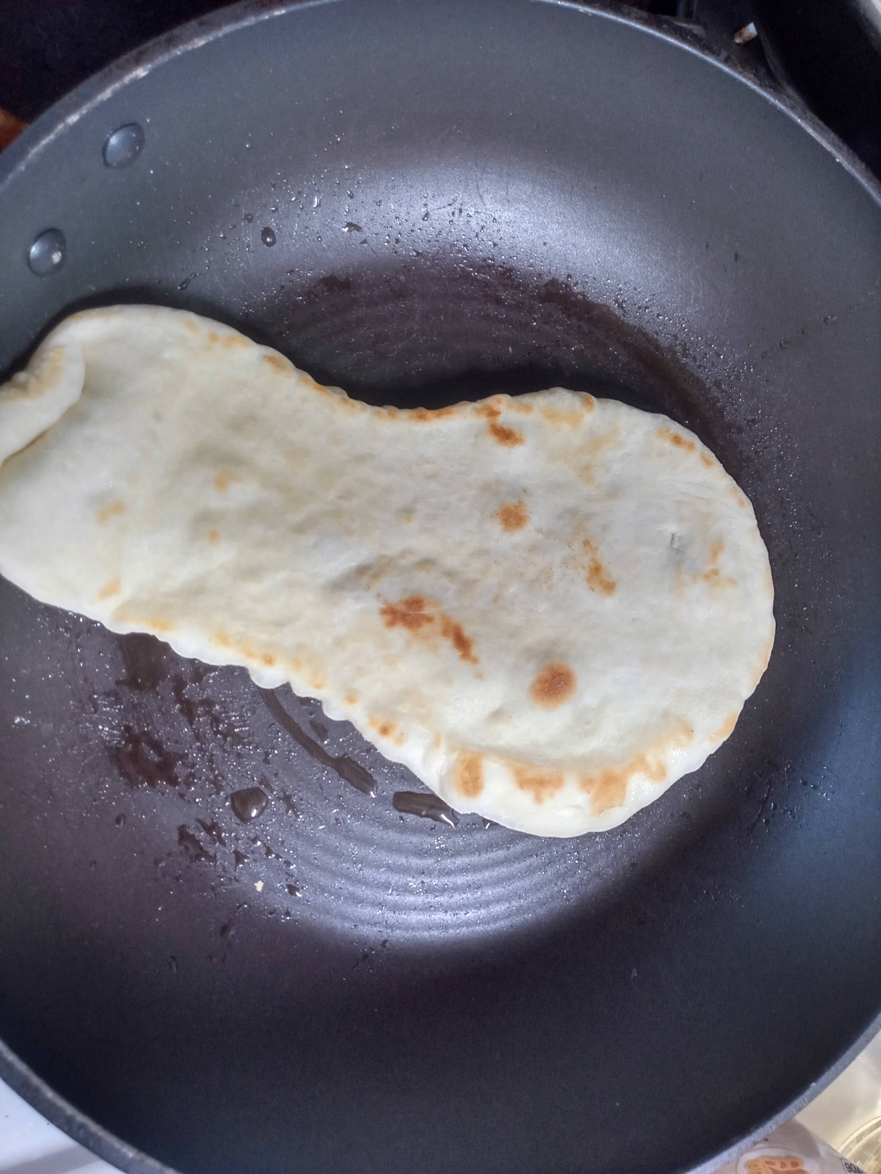 しかもぷっくりと焼き目がついてお店のナンのような見た目です。