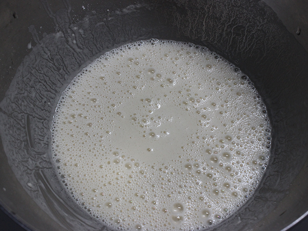 イメージとしてはクレープ生地に近いイメージで水で伸ばします。