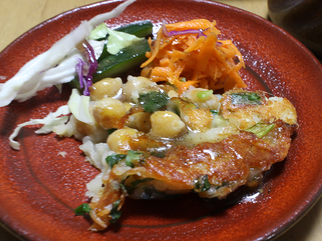 さて今日はちくわお好み焼きを作ったついでにひよこ豆のチーズお好み焼きも作ってみました~!