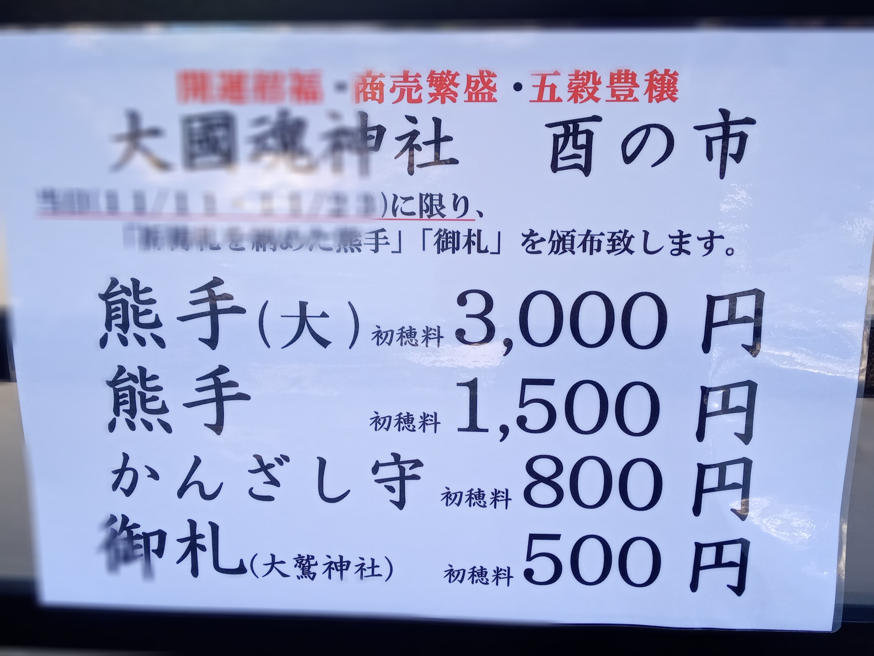 パワーを体中に吸い込んだあとにテクテクと歩いていると・・・・神社で見つけた酉の市の張り紙。