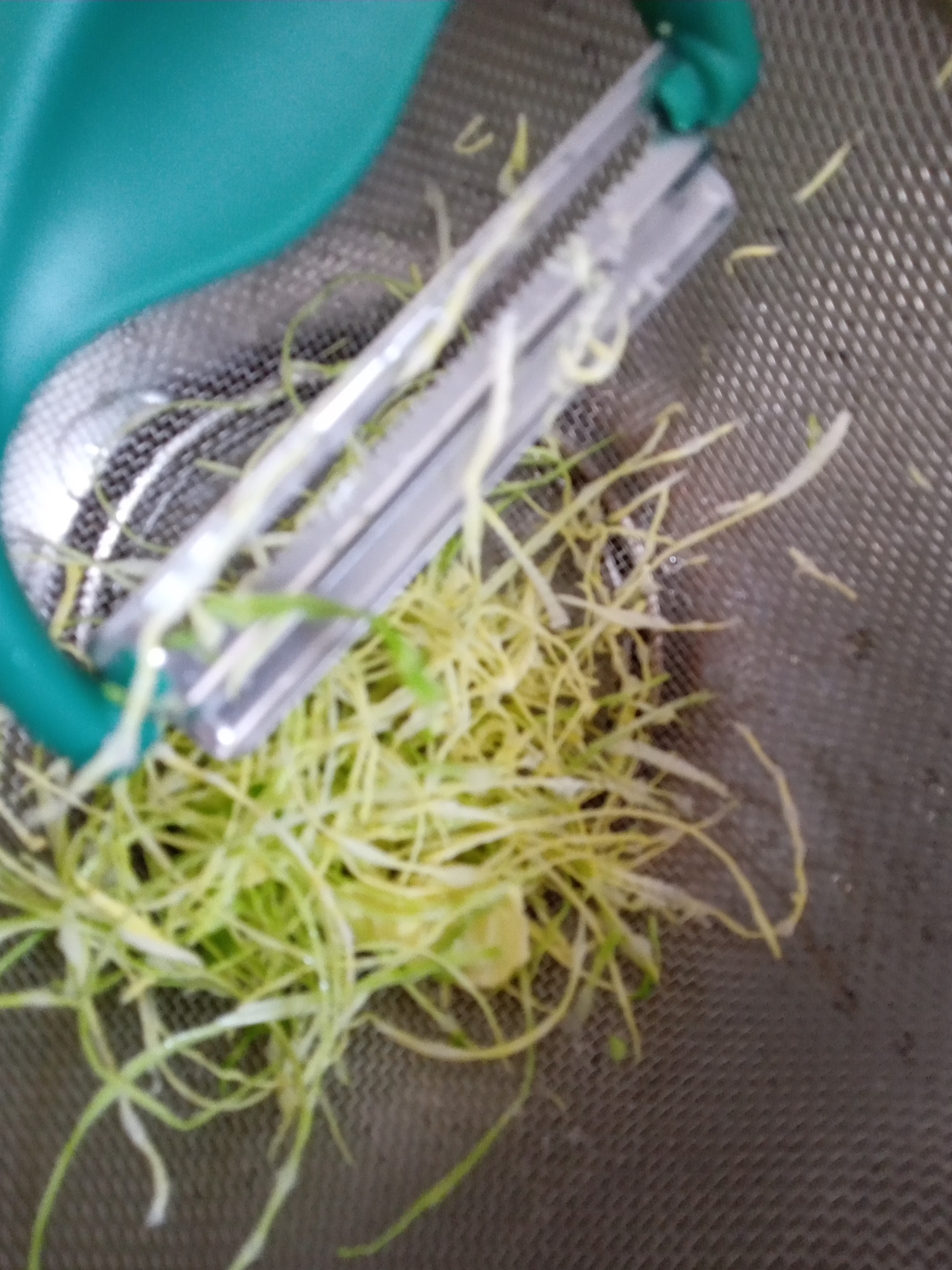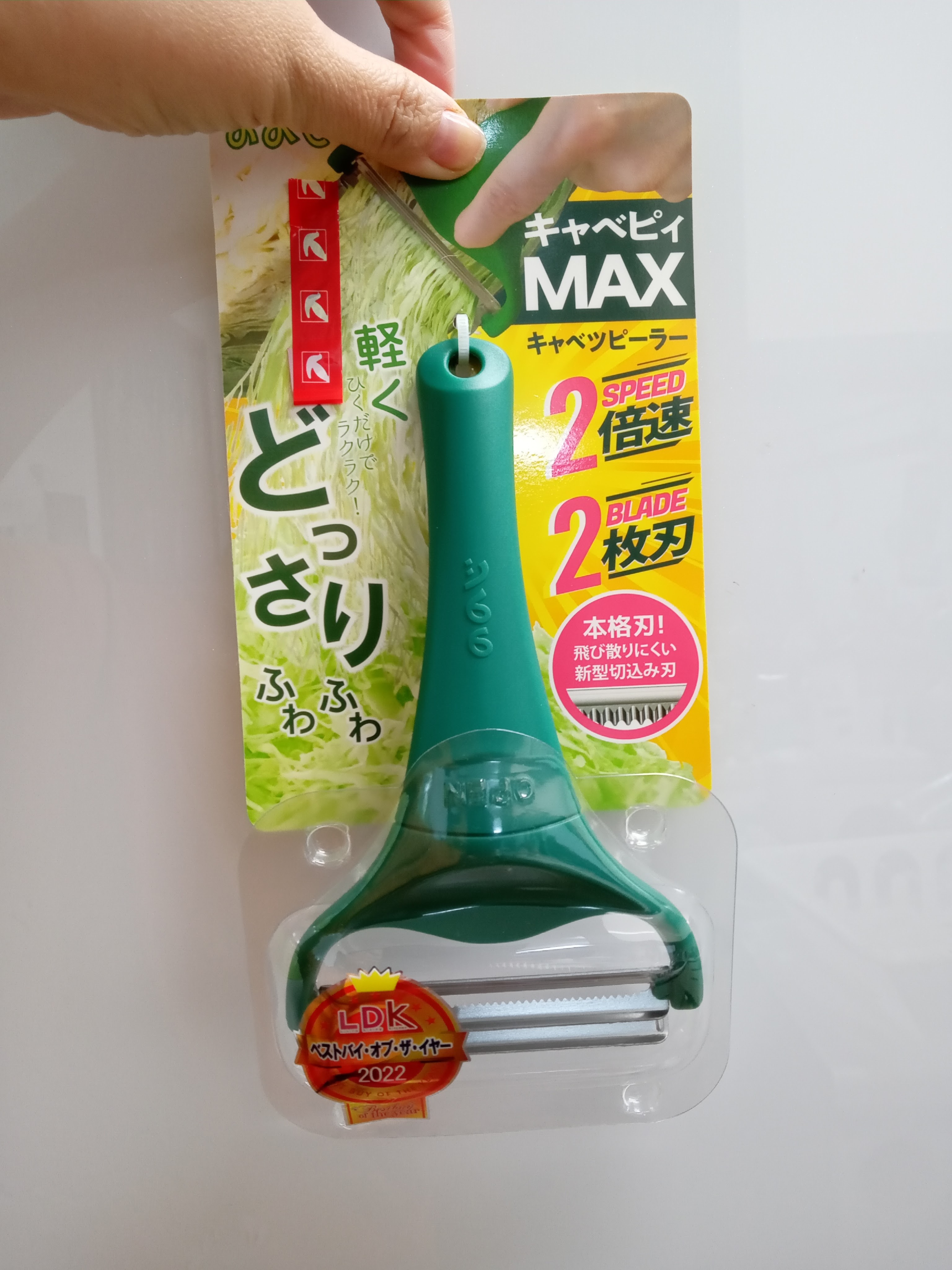 「ののじ」というメーカーさんの千切りピーラーは人参でお世話になっていますが、キャベツに特化したピーラーで軽くするだけでふわふわのキャベツの千切りが完成する商品です。
