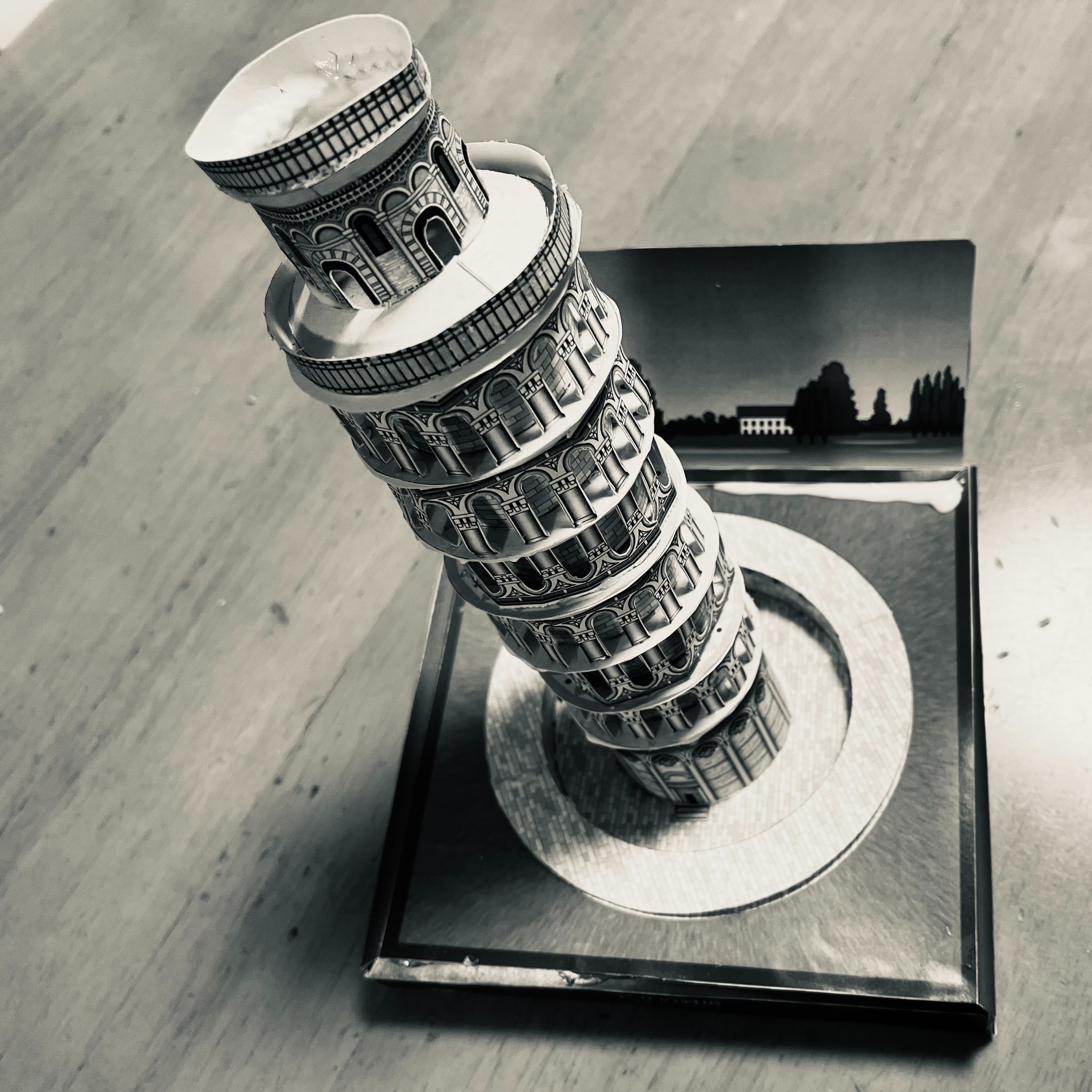 さて昨日はやっとやっとペーパークラフトの『ピサの斜塔』が完成しました