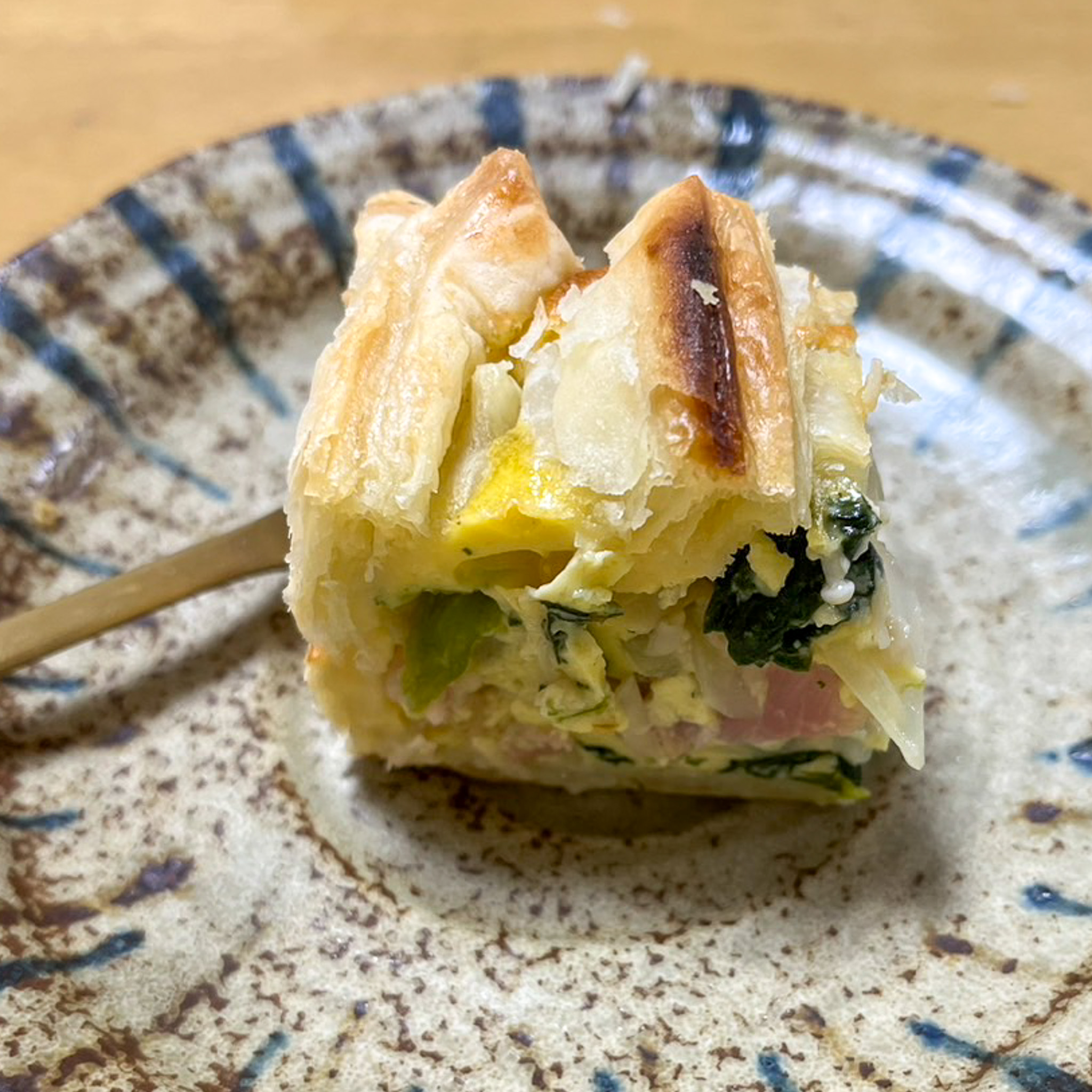 ほうれん草とえのきだけとベーコンのぎっちりキッシュ