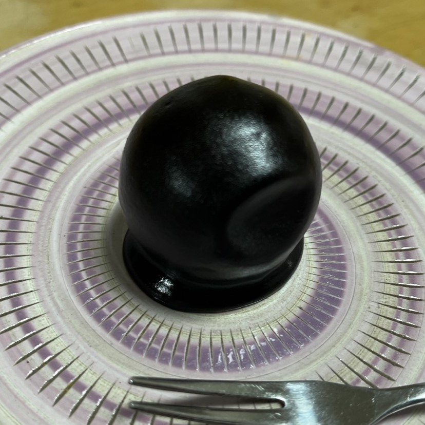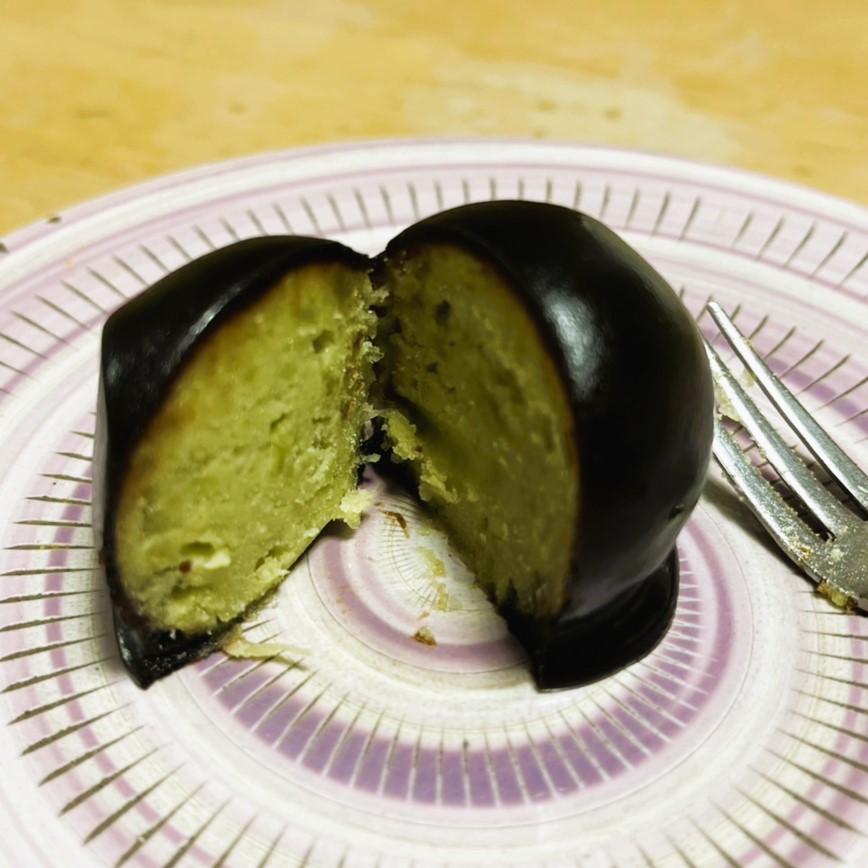 ぜんぶ真っ黒と思いきや中にはエメラルドグリーンの餡が入っています