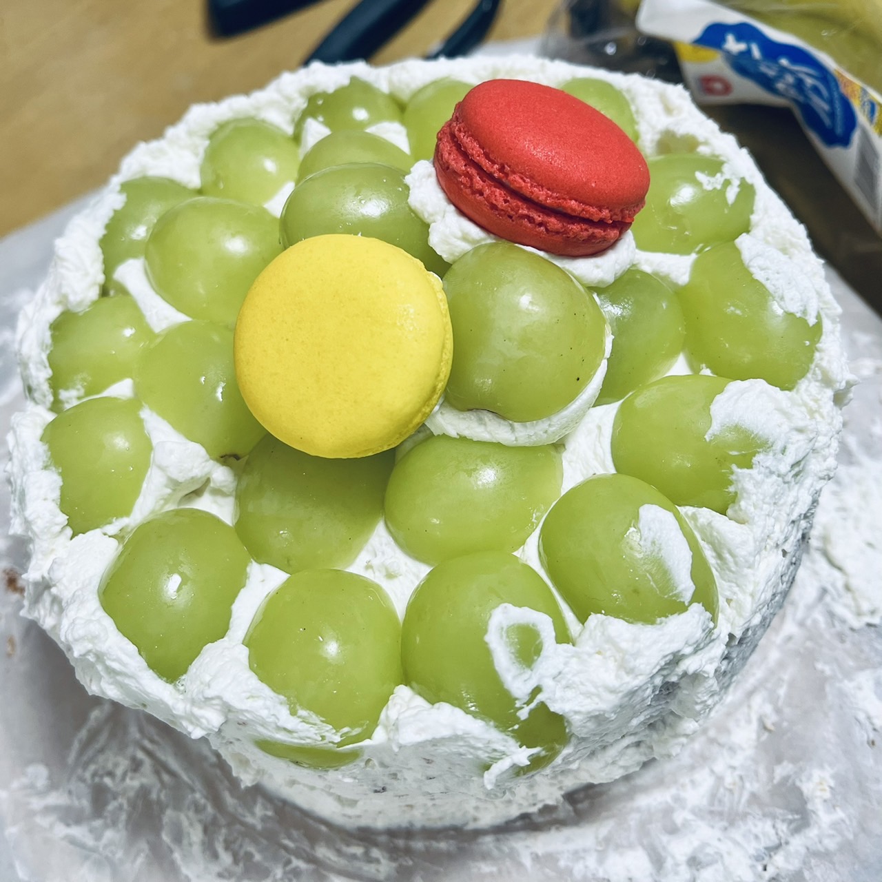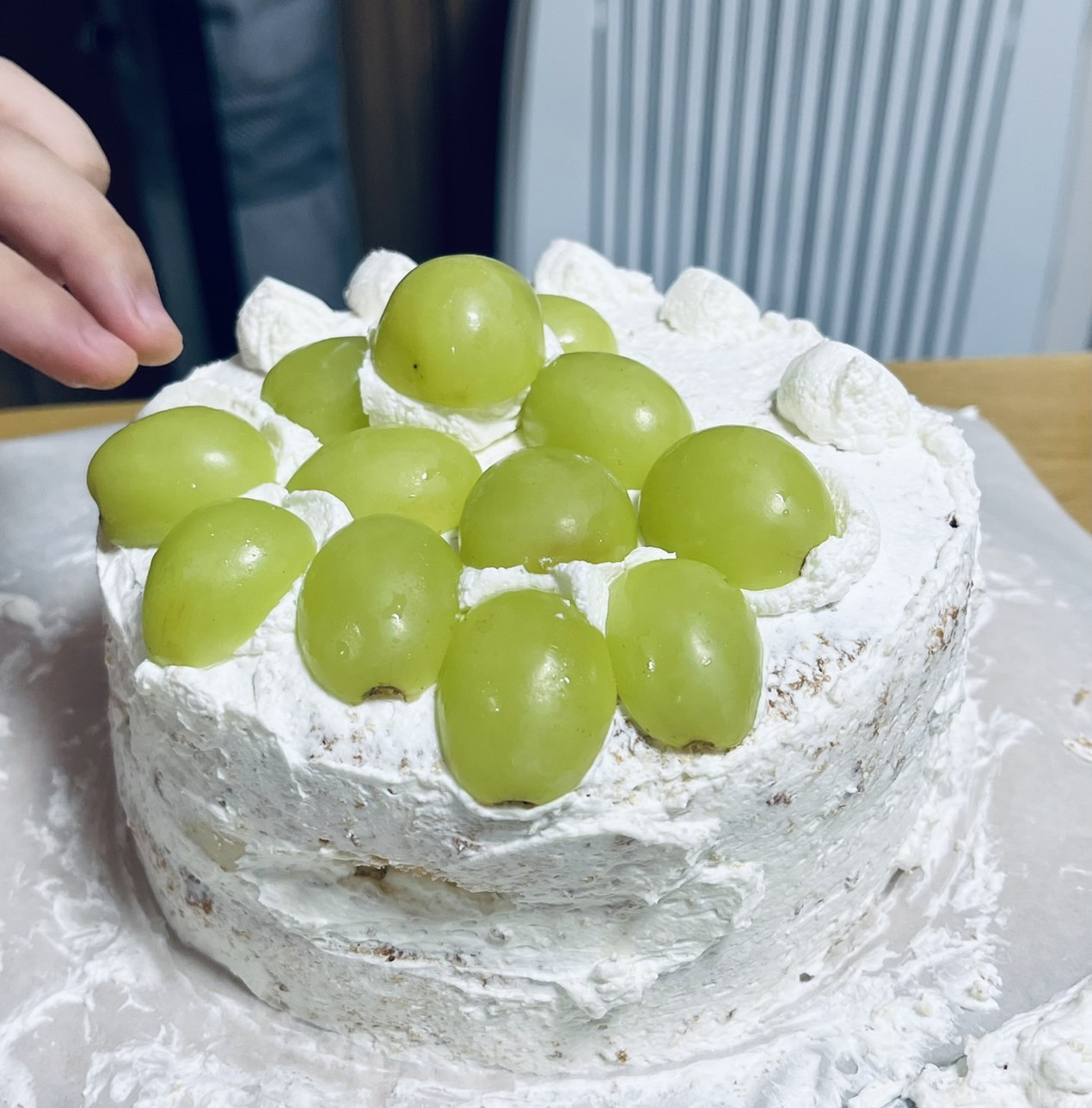 シャインマスカットが少し値がはるのでもしパインや桃の缶詰を使用したらもっとお得にホールケーキが作れることでしょう
