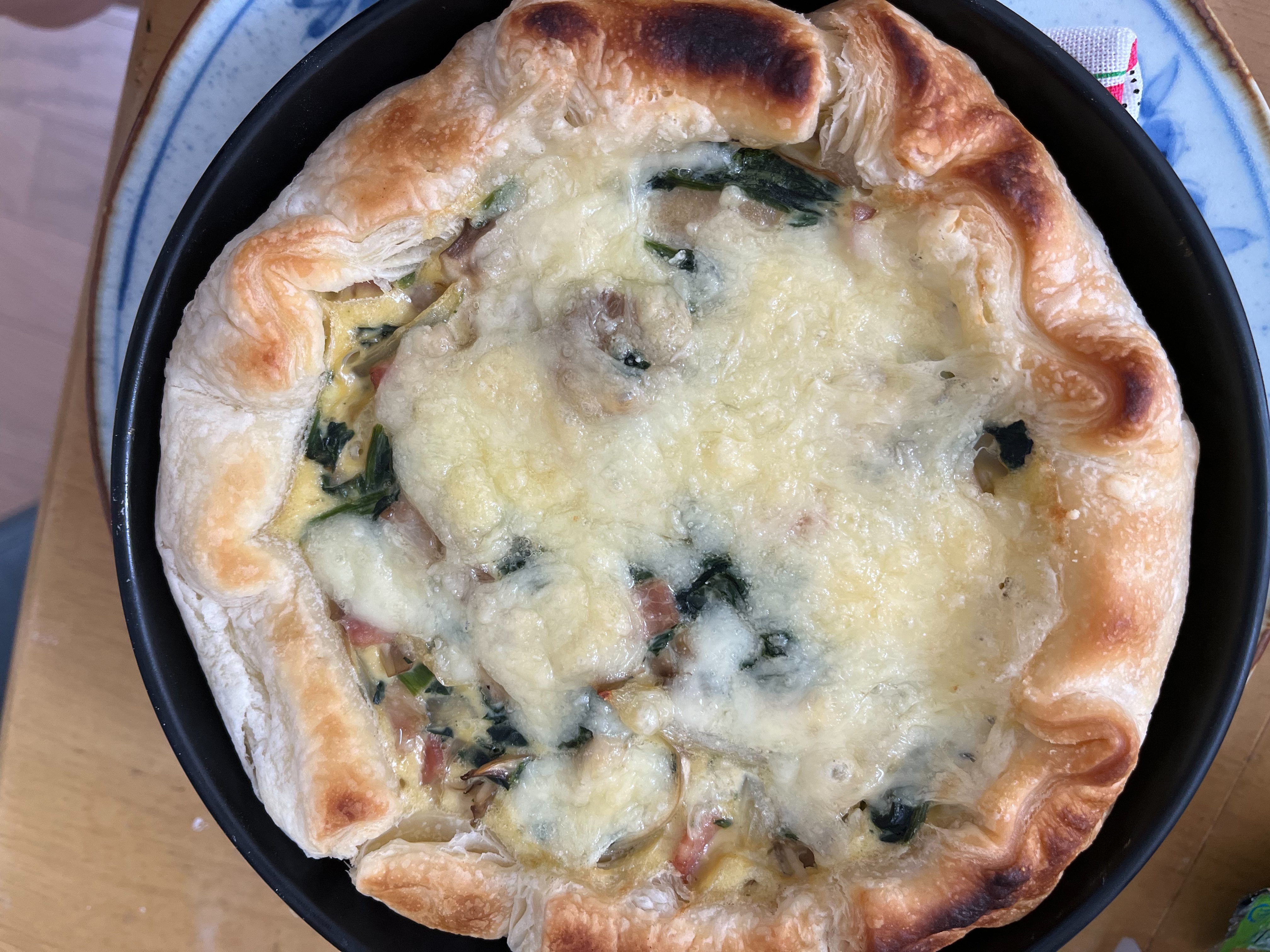 冷凍パイシートと生クリーム、ベーコンもあったのでキッシュを作りました
