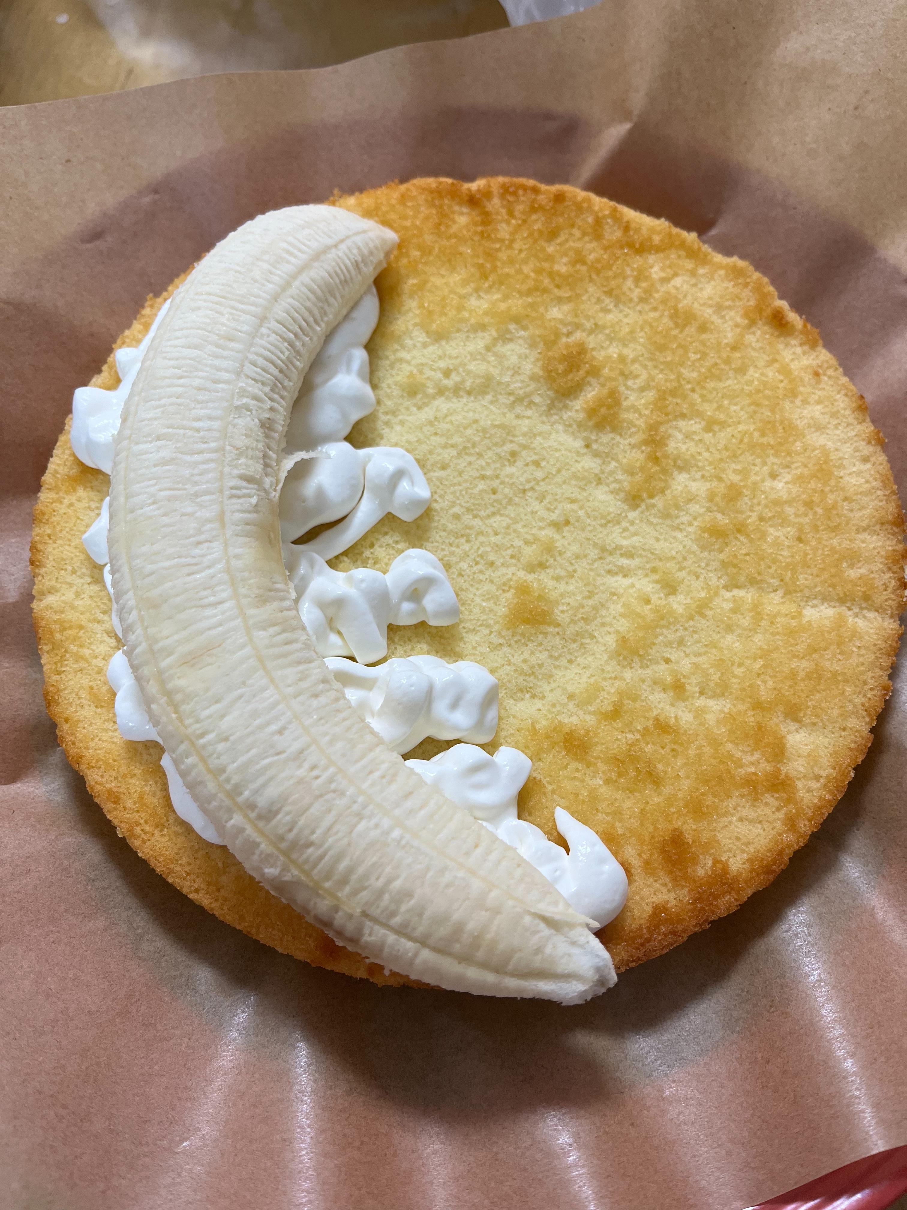 また生クリームも余っていたので生協さんで届いたばかりのバナナを使ってまるごとバナナを作ってみました