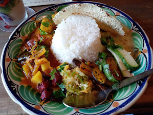 野菜カレーはかぼちゃ、カリフラワー、レンコン、いんげんなどがゴロゴロ入っています