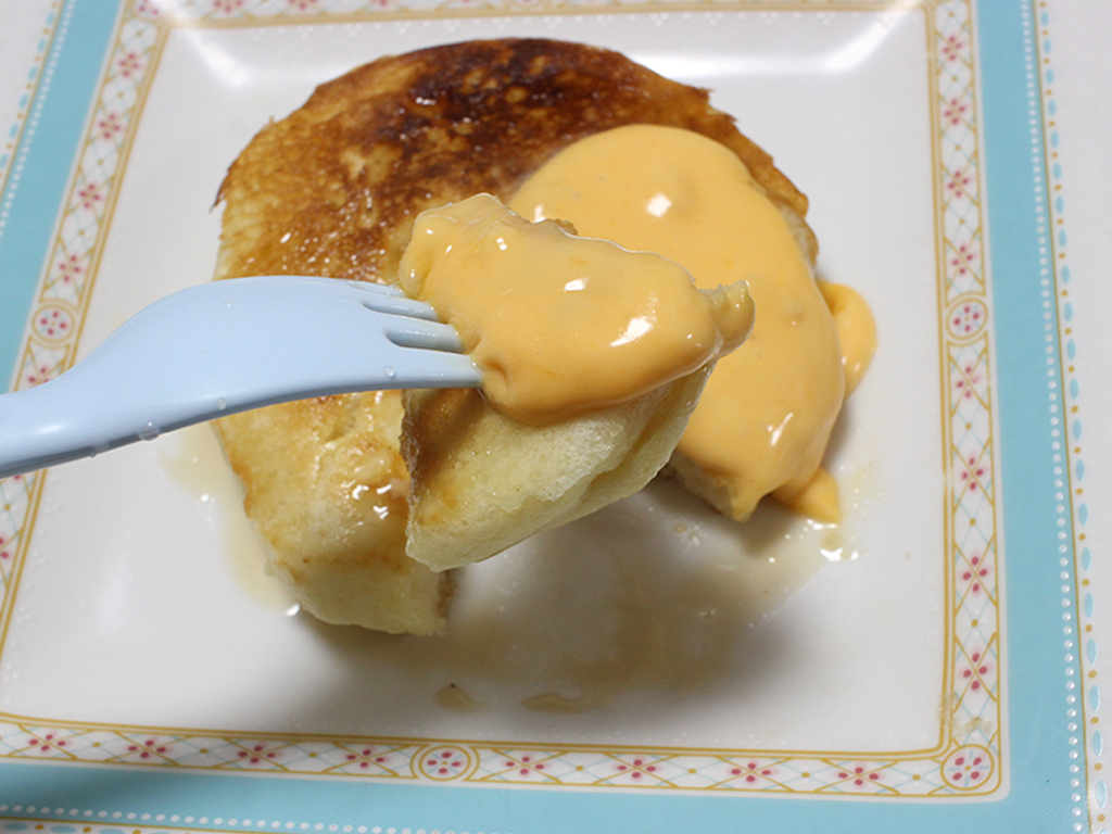 チェダーチーズソースを上からかけたら甘くてしょっぱくって朝ごはんにぴったりでした(^^)/