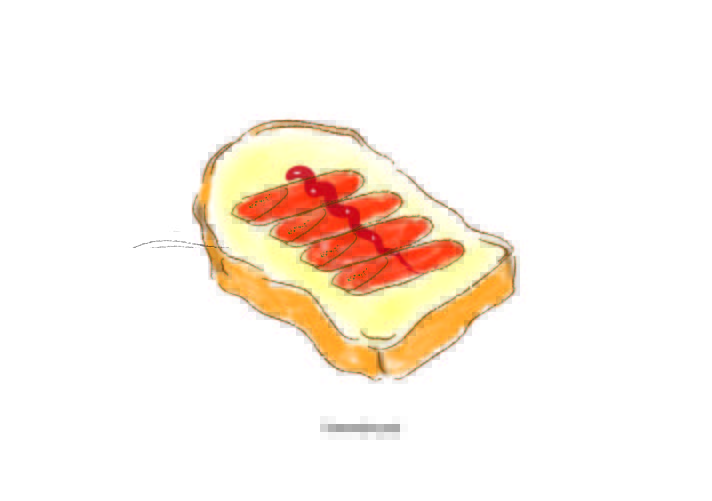 ①真ん中に切り込みを入れてハンバーガーソースを塗ります。