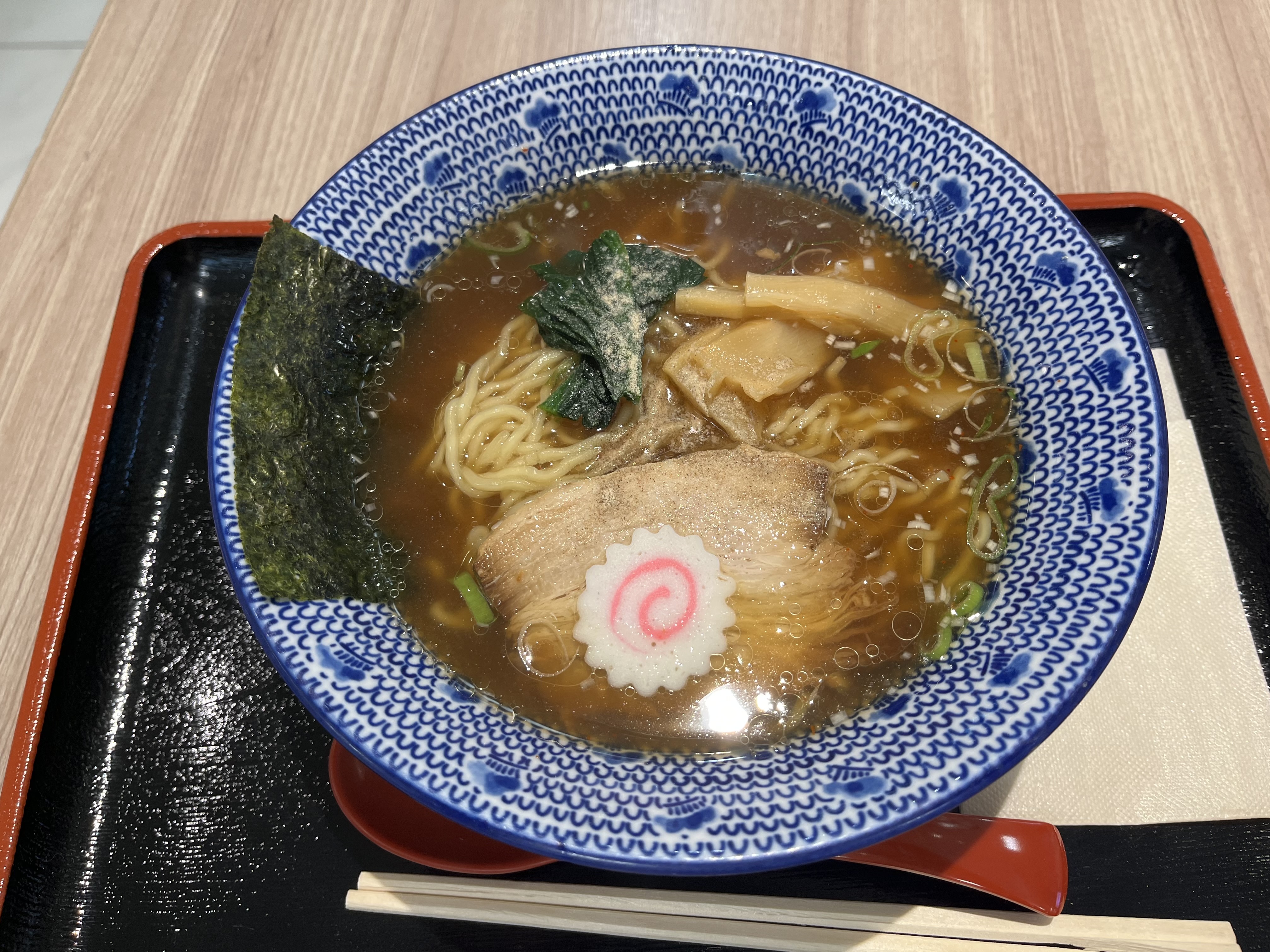 多摩センター駅直結の「ココリア多摩センター」内にあるフードコートで、人気ラーメン店「ちゃーしゅうや武蔵」の醤油ラーメンをいただいてきました。