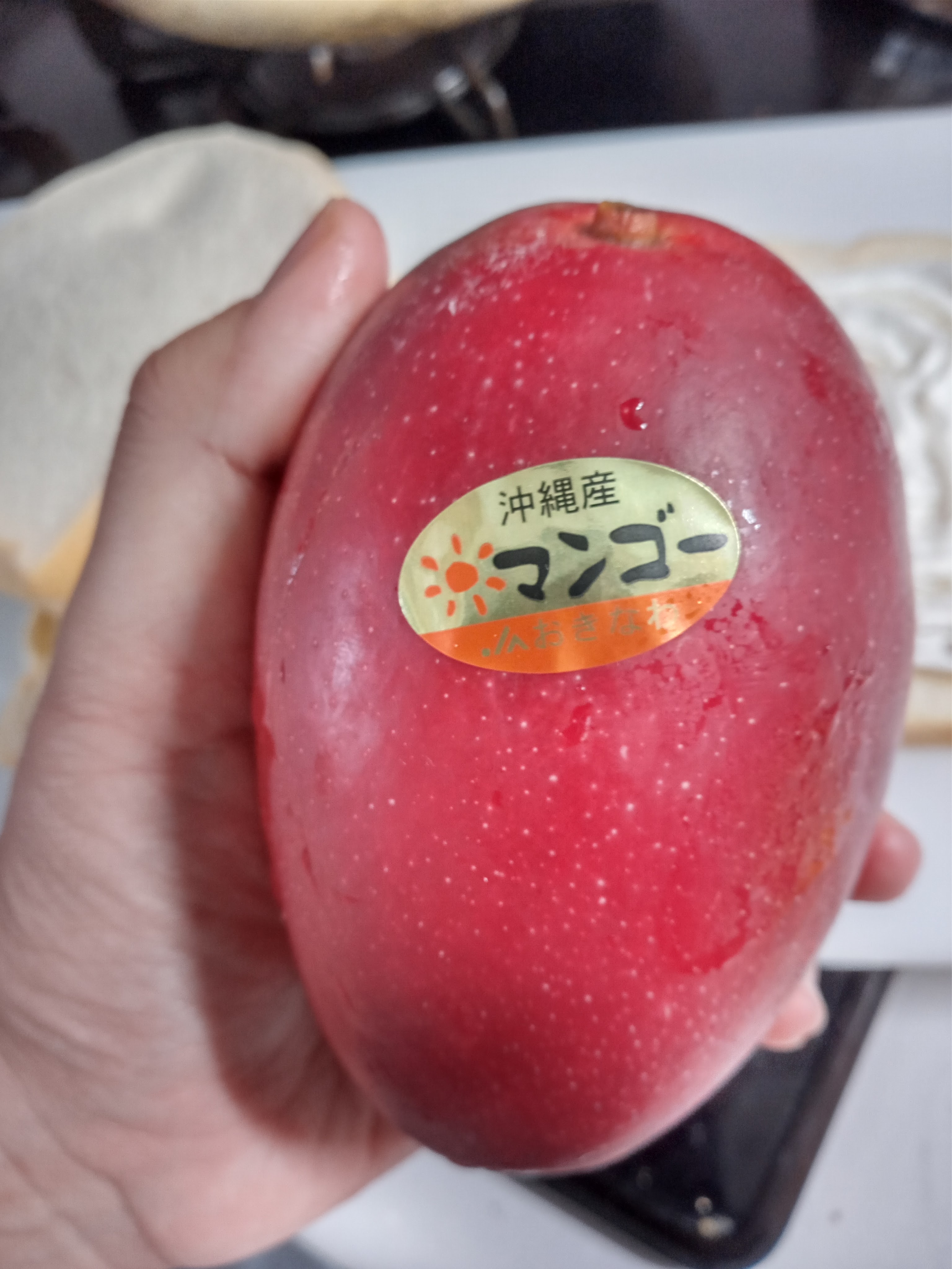 ということで沖縄産マンゴー2個をスーパーで購入し、先手家さんのサンドイッチを思い出しながら材料を揃えてみました。沖縄産マンゴーは今旬のようで山積みになっていました。