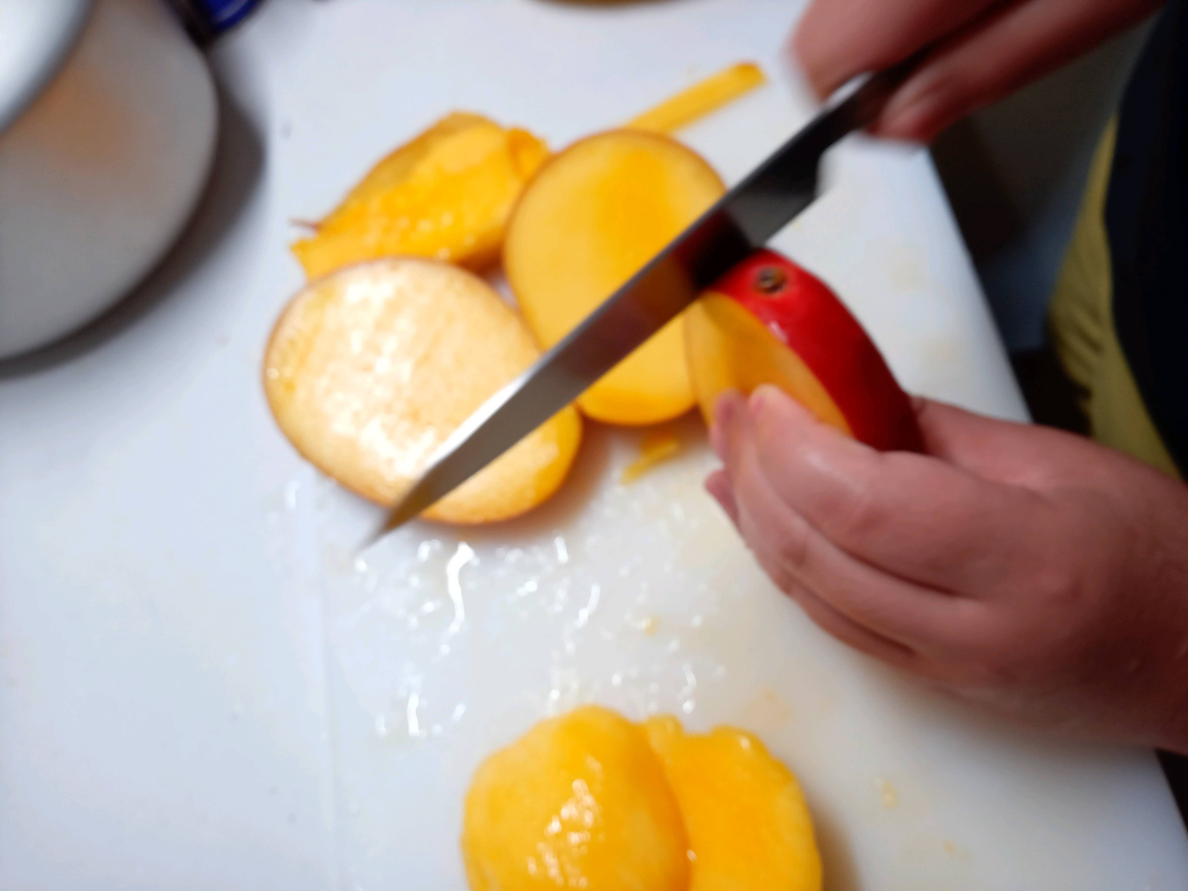 マンゴーのタネを切り落とし合わせて真ん中へ