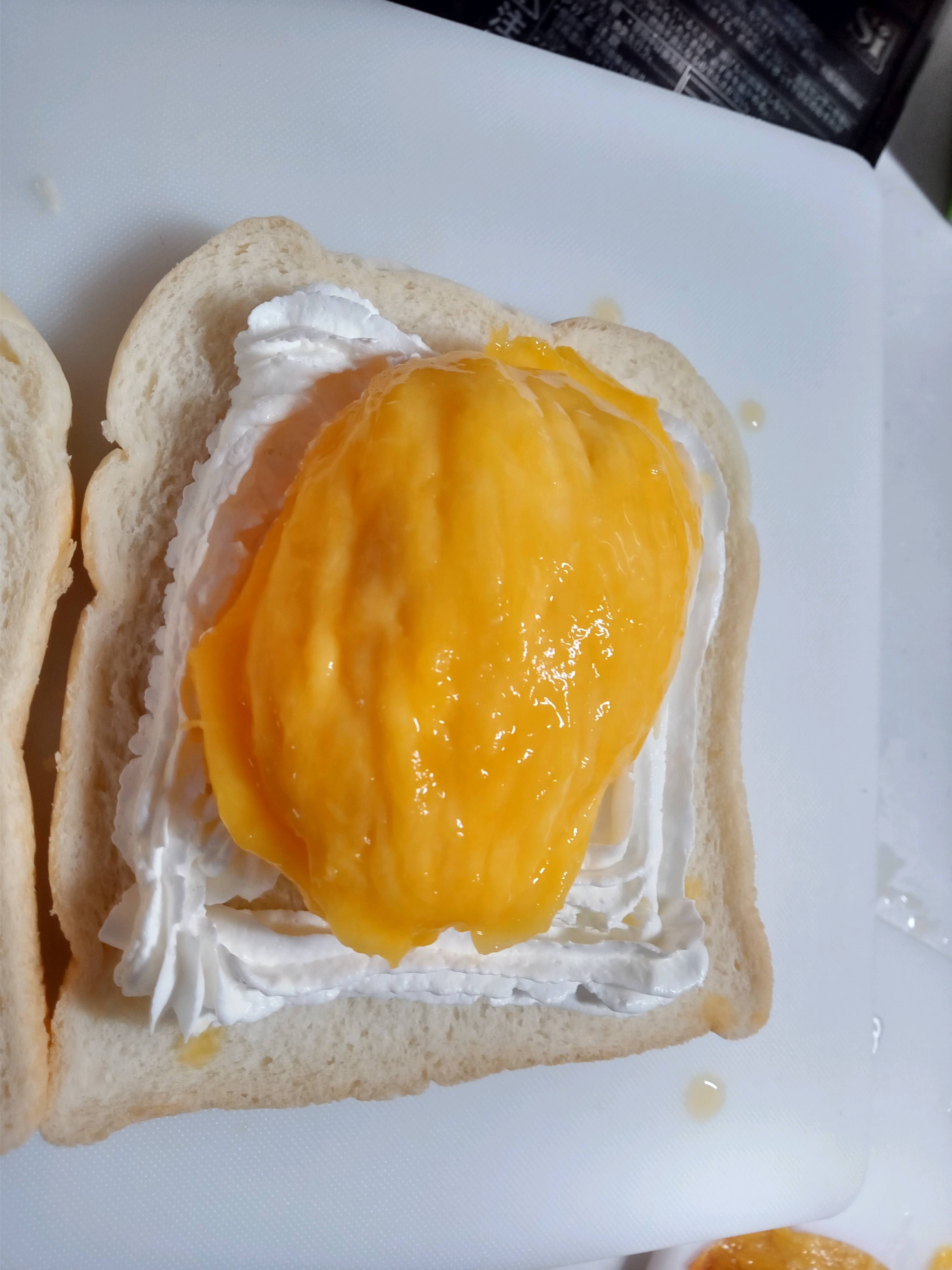 4枚の食パンで4つマンゴーサンドが出来ました~。