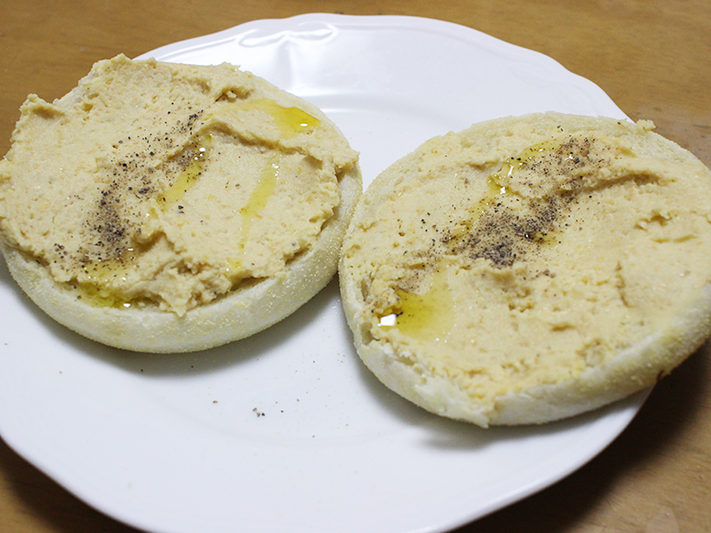 ひよこ豆のフムスはイングリッシュマフィンにもぴったり
