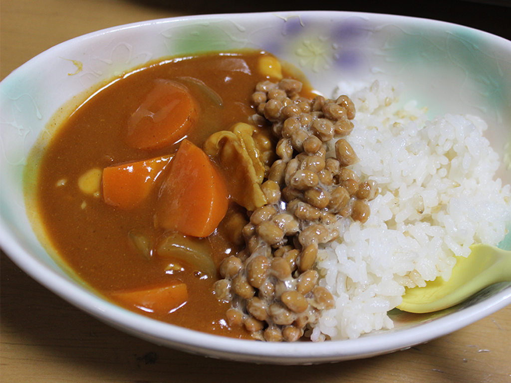 カレーと一緒に食べると納豆のくさみは0になり